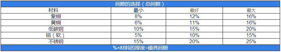 请参照下表选择模具间隙(表中数据为百分数)