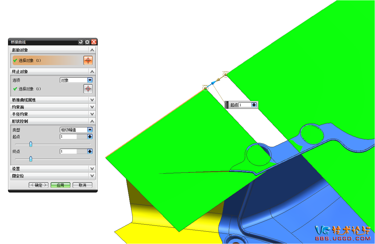 7.用“桥接曲线”命令桥接一根线,如图所示